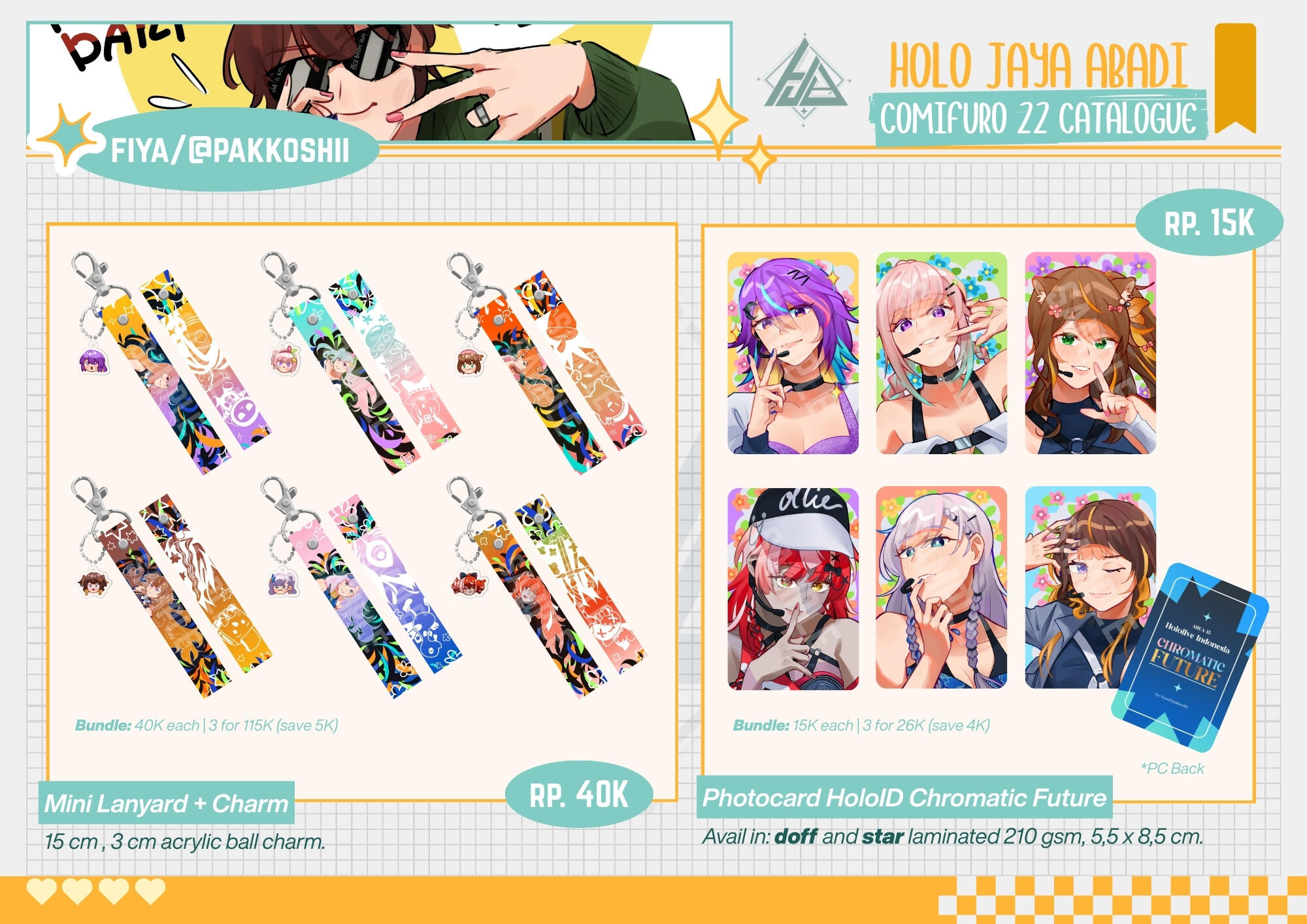 A personal merchandise initiative developed and presented as part of a group participation in local events such as Comifuro and Chibicon. I independently handled both the design and production of my merchandise, including print preparation and vendor sourcing